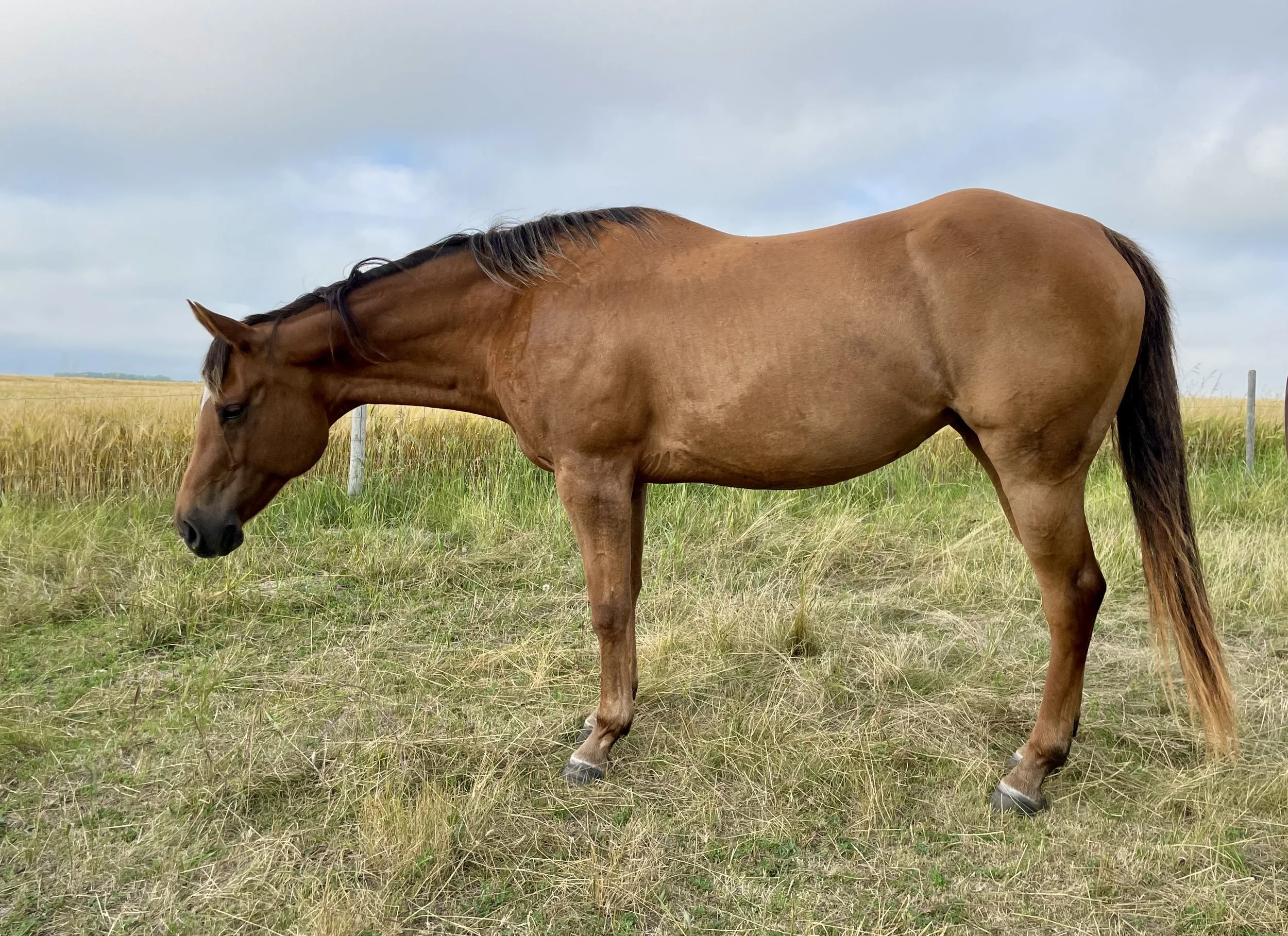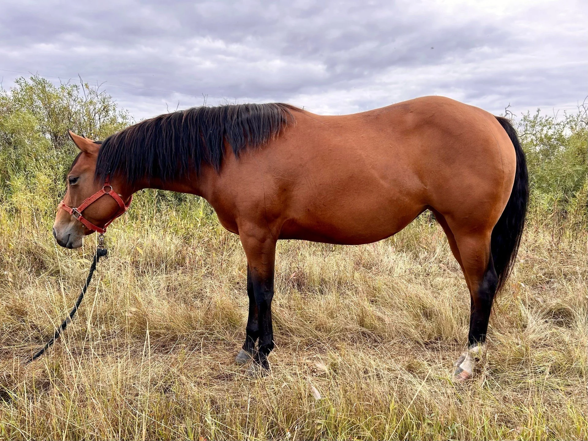 Another great mare from the Little Valley performance horse program. Nova is a nice big mare at 15.3 H and was broke to ride by her previous owners. She has been a delight for us to work with. With a pedigree like hers, her foals are sure to exceed as all around/western show horses. Her dam line doesn’t need much introduction with Good I Will Be and Invite Me To Prom on it!